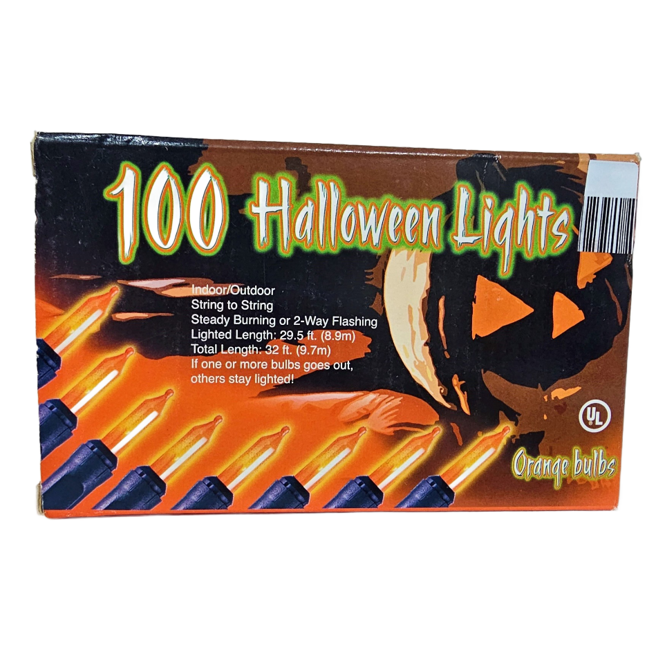 100ct Halloween Orange Mini String Light Set Black Wire Indoor/Outdoor 32 ft.