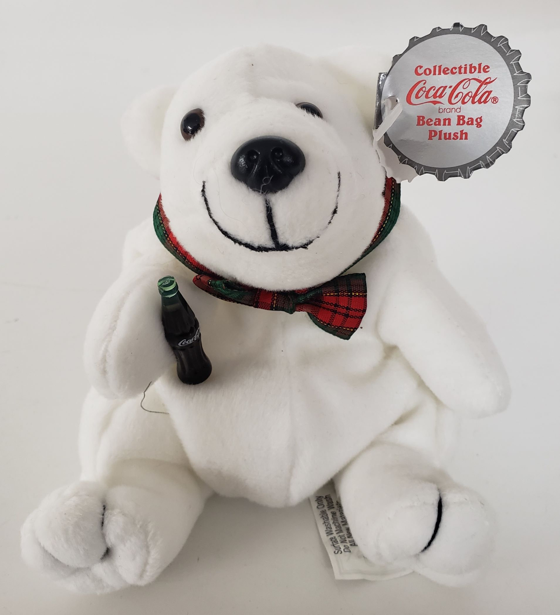 Collectible Coca-Cola Brand Bean Bag Plush. Features Polar Bear Holding a Coke Bottle.