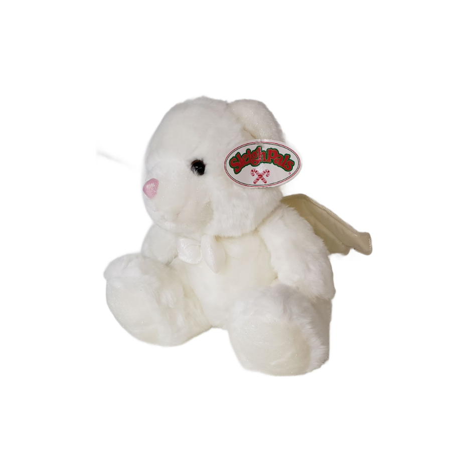 - “Sleigh Pals” White w/ Glitter Angel Bear; off-white iridescent wings