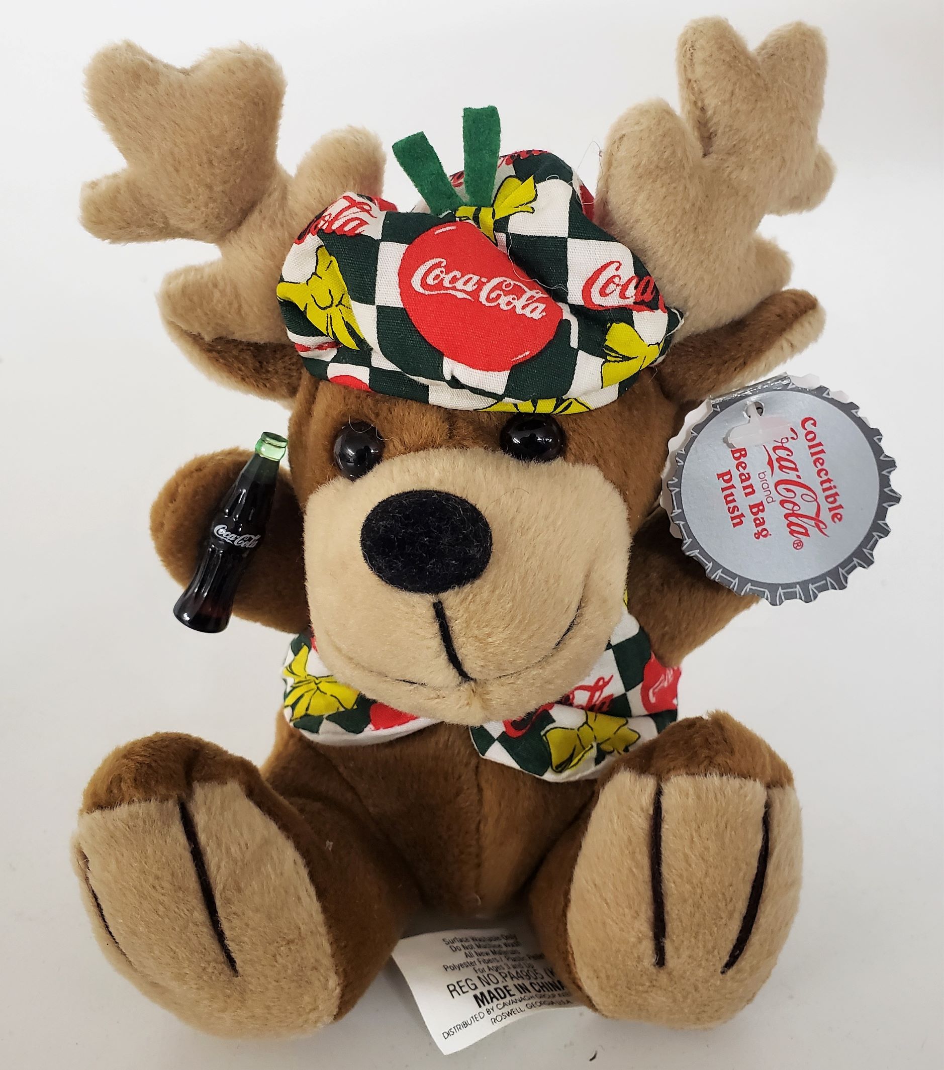 1998 Collectible Coca-Cola Brand Bean Bag Plush – Reindeer In Festive Coca-Cola Vest & Hat