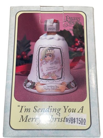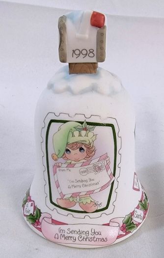 1998 Enesco Precious Moments I’m Sending You A Merry Christmas Porcelain Bell 4″