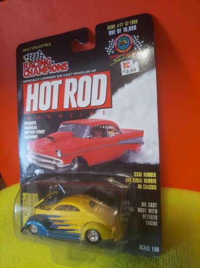 1998 Racing Champions Hot Rod Mag 1937 Ford Yellow/Blue Custom Diecast 1:58 Scale