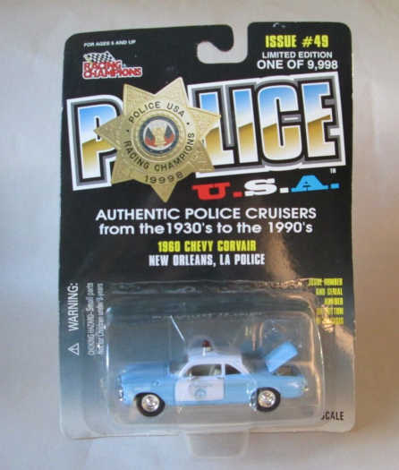 1998 Racing Champions Police 1960 Chevy Corvair New Orleans, LA Police Car Diecast 1:56 Scale