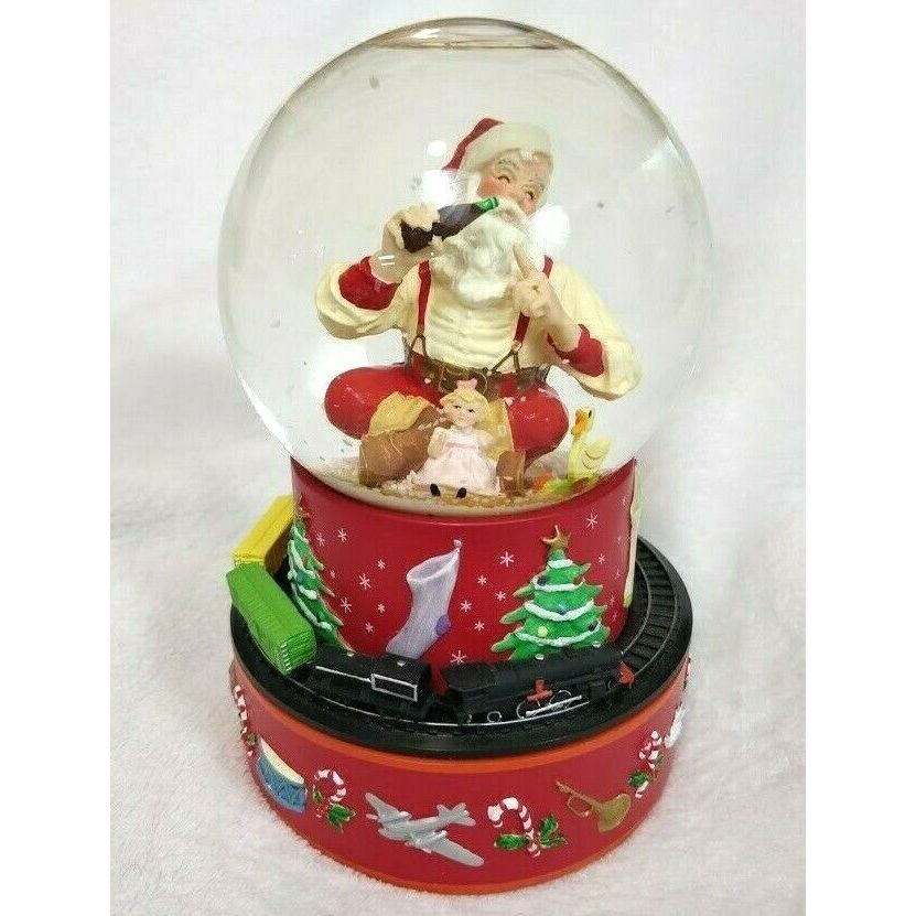 2001 Hallmark Coca-Cola Santa Musical Snow Globe With Moving Train Plays Tune “I’d Like To Teach The World To Sing”