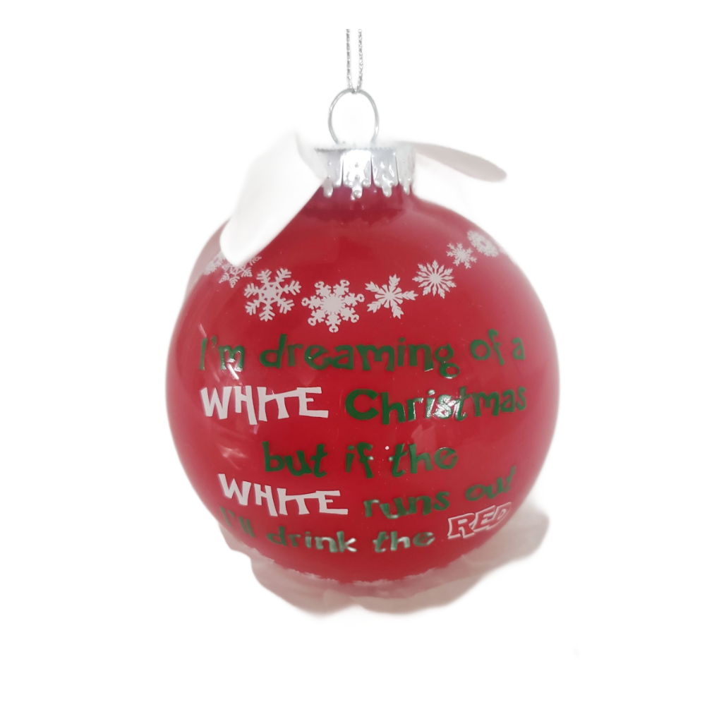 - Personalize this dated 2016 Red Glass Ball Ornament with the included black marker Reads: “I’m dreaming of a WHITE Christmas but if the WHITE runs out I’ll drink the RED”