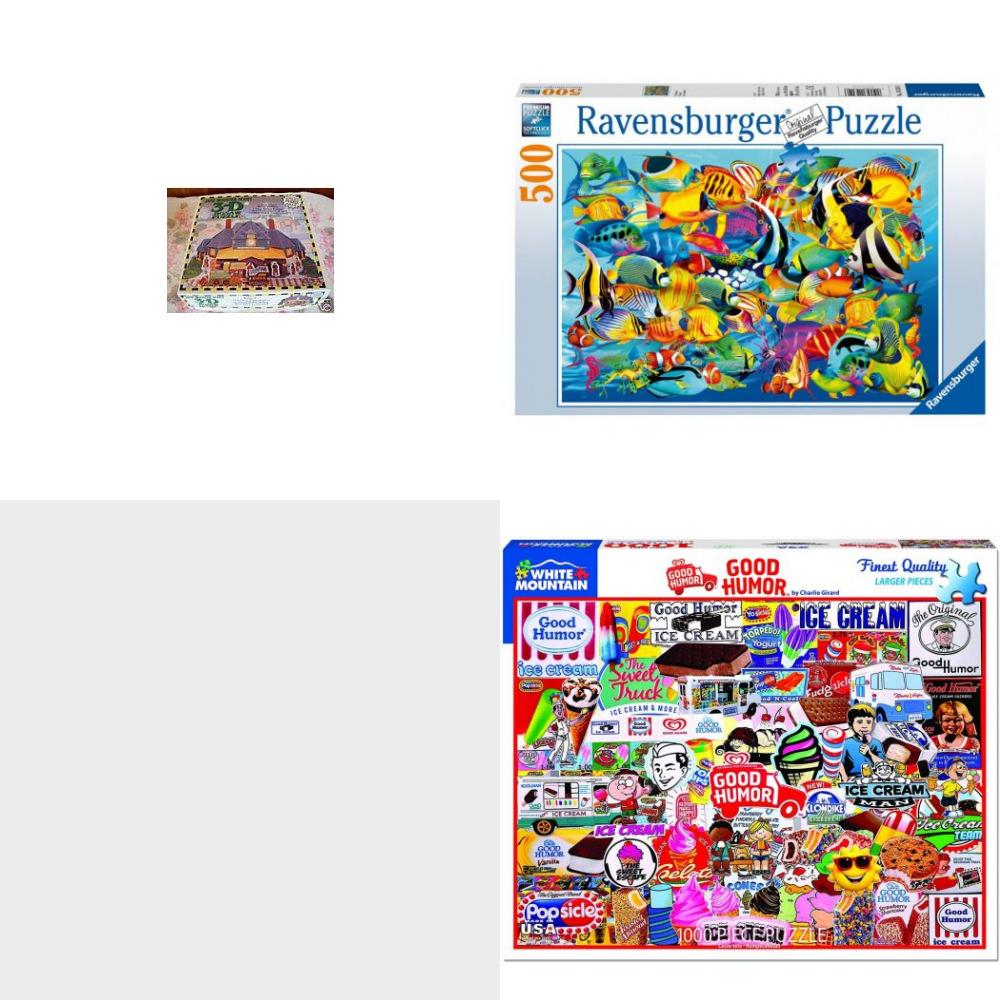 Assorted Puzzles 4 Pack Bundle: Jane Wooster Scott 3-D Jigsaw Puzzle Train Station, Ravensburger “Fish Frenzy” 500 Piece Jigsaw Puzzle, Adorable Terrier Puppies 24 Piece Puzzle, White Mountain Puzzles Good Humor – 1000 Piece Jigsaw Puzzle
