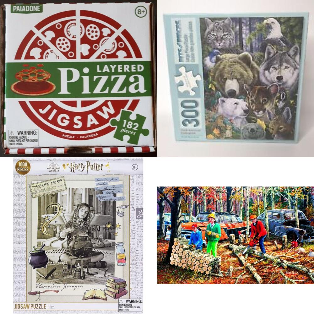 Assorted Puzzles 4 Pack Bundle: Paladone Layered Pizza 182 Piece Jigsaw Puzzle, Bits And Pieces 300 Large Piece Puzzle – North American Endangered, Paladone Harry Potter Polyjuice Potion 1000 Piece Jigsaw Puzzle, Fall Chores 300 pc Jigsaw Puzzle by SunsOut