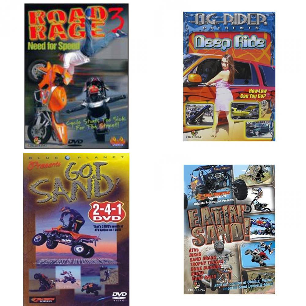 Auto, Truck & Cycle Extreme Stunts & Crashes 4 Pack Fun Gift DVD Bundle: Road Rage Vol. 3 – Need for Speed Og Rider: Deep Ride Got Sand? by Blue Planet Eatin Sand!