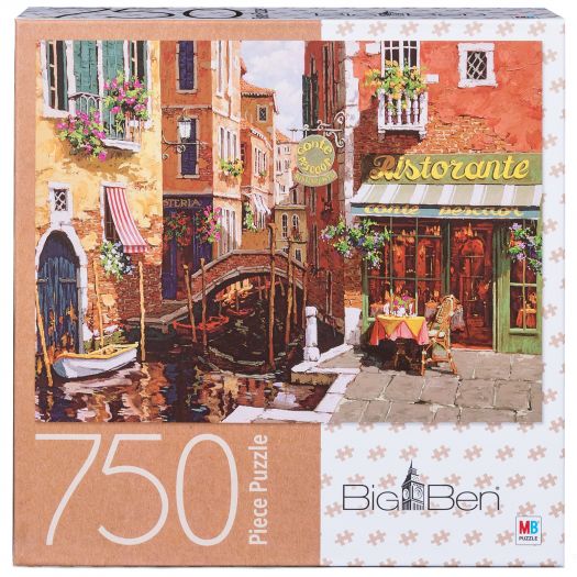 This 750-piece jigsaw puzzle features a beautiful paint of Venice, Italy. The Big Ben line of jigsaw puzzles feature high-quality cardboard pieces that snap together firmly for a great fit that lasts. Measures 20 x 27 when complete. 2017 Hasbro/Milton Bradley/Cardinal.