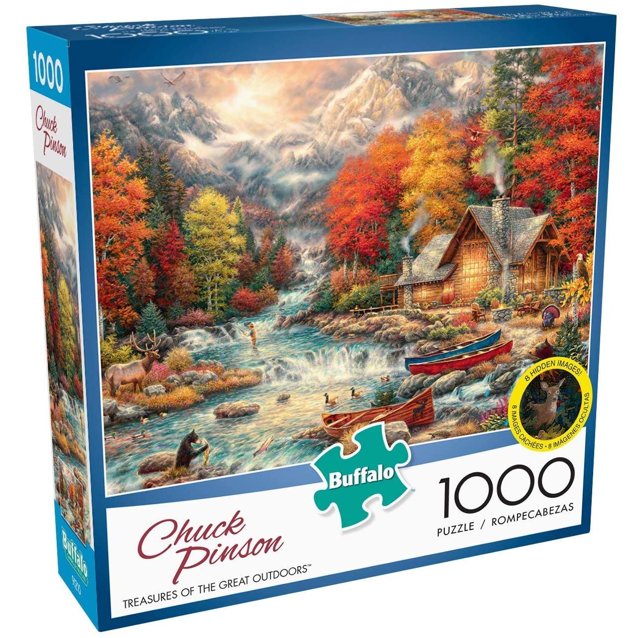 - Contains a 1000 piece jigsaw puzzle with 8 hidden images