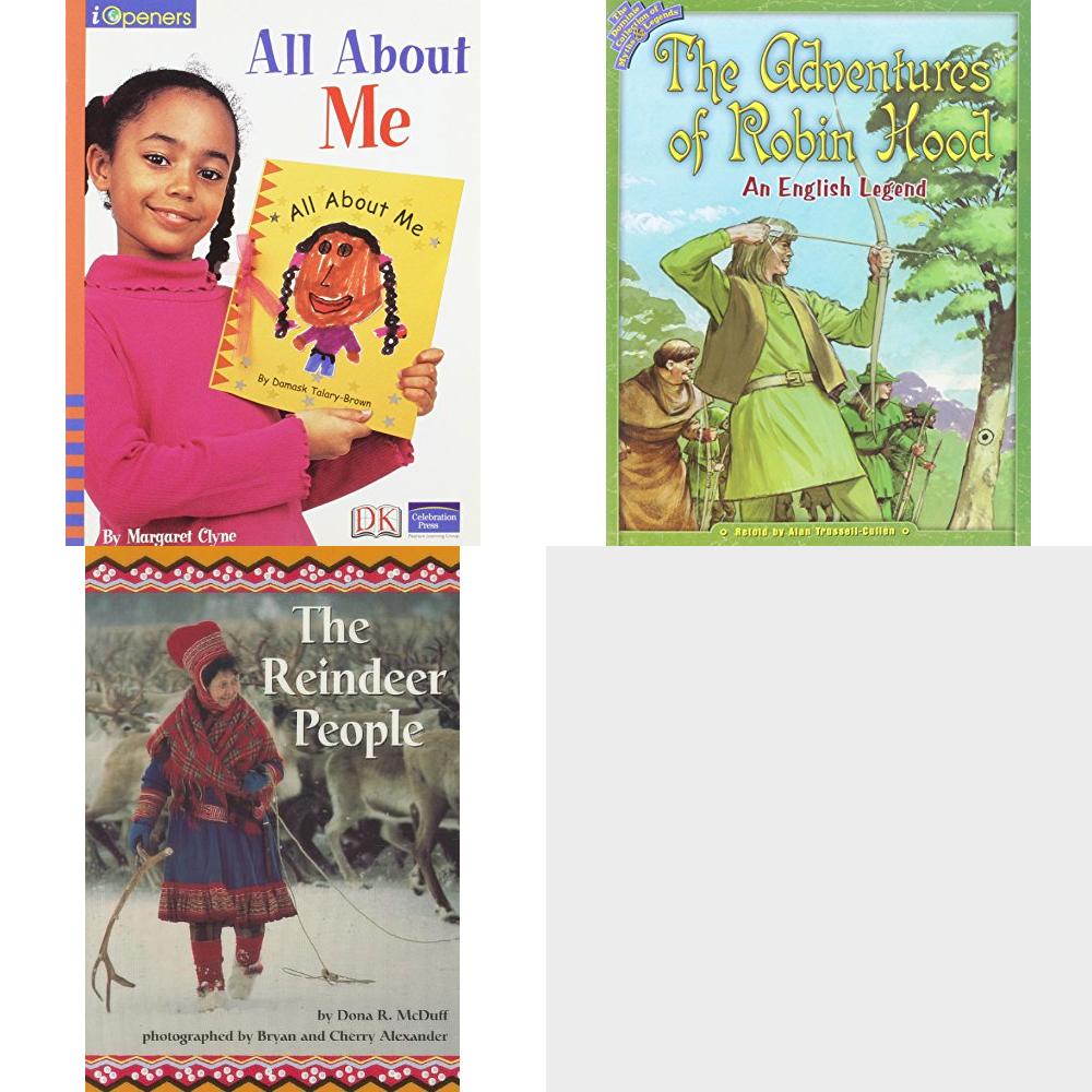 Children’s Fun & Educational 4 Pack Paperback Book Bundle (Ages 6-12): IOPENERS ALL ABOUT ME SINGLE GRADE 2 2005C, ADVENTURES OF ROBIN HOOD Dominie Collection of Myths & Legends, The Reindeer People Scott Foresman Reading: Orange Level, KING MIDAS &..GOLDEN TOUCH 6PK Dominie Collection of Traditional Tales