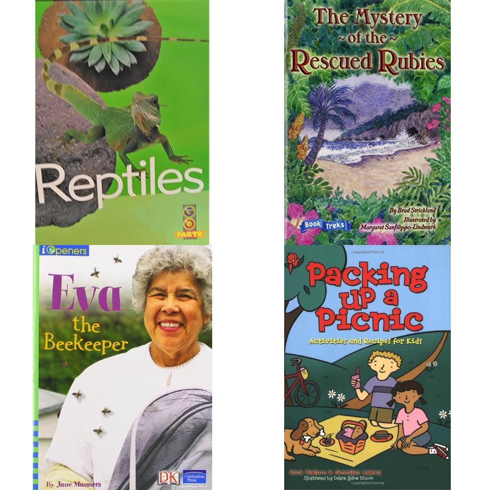 Children’s Fun & Educational 4 Pack Paperback Book Bundle (Ages 6-12): Reptiles Go Facts Series, Book Treks Extension the Mystery of the Rescued Rubies Gr 5 2005c, IOPENERS EVA THE BEEKEEPER SINGLE GRADE 1 2005C, Packing up a Picnic: Activities and Recipes for Kids Acitvities for Kids