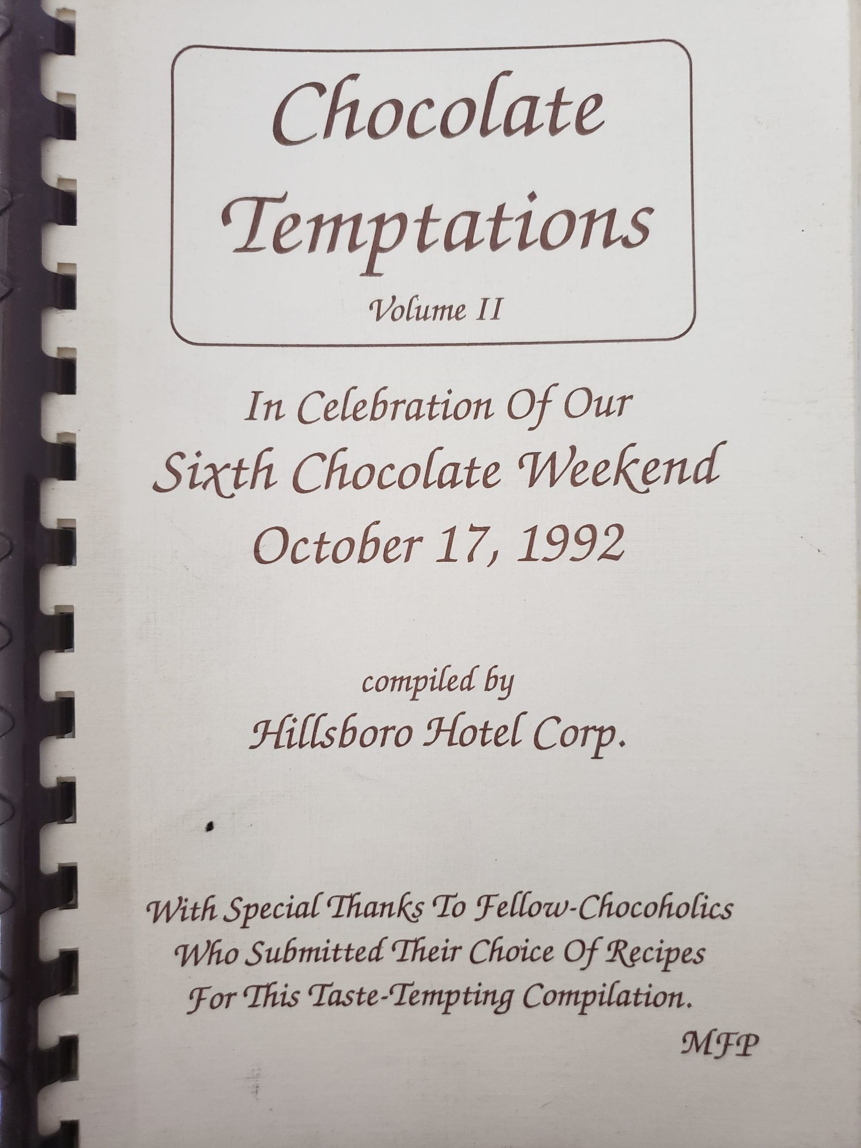 Chocolate Temptations Cookbook Hillsboro Hotel Corp. 1992 (Plastic-comb Paperback)