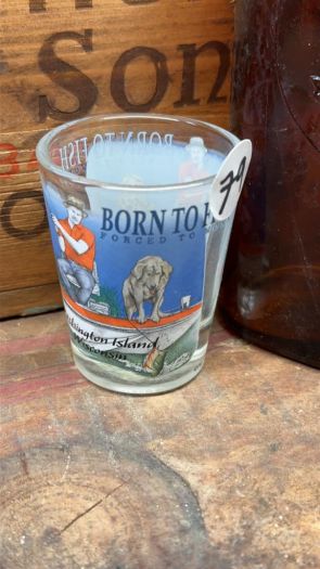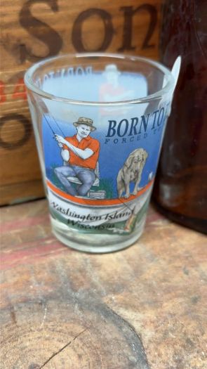 Collectible Shot Glass featuring Born to Fish, Forced to Work, Washington Island, Wisconsin