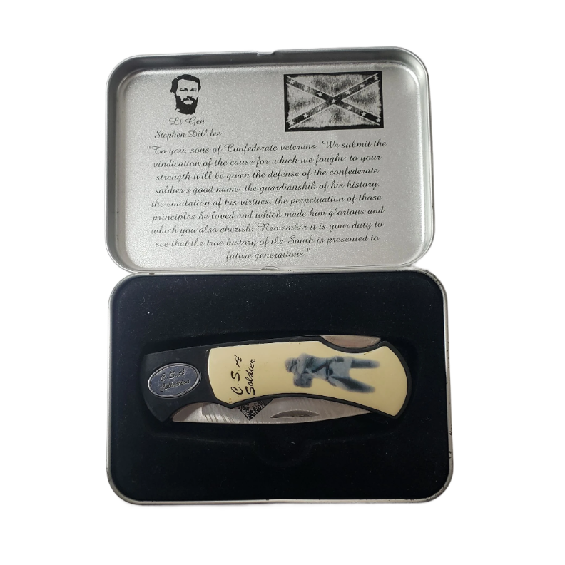 CSA Collection Confederate Soldier Fighter Plus Pocket Knife In Tin