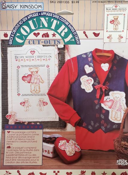 Daisy Kingdom Country Cutouts No-Sew Applique Berry Merry Christmas Teddy Bear #19110