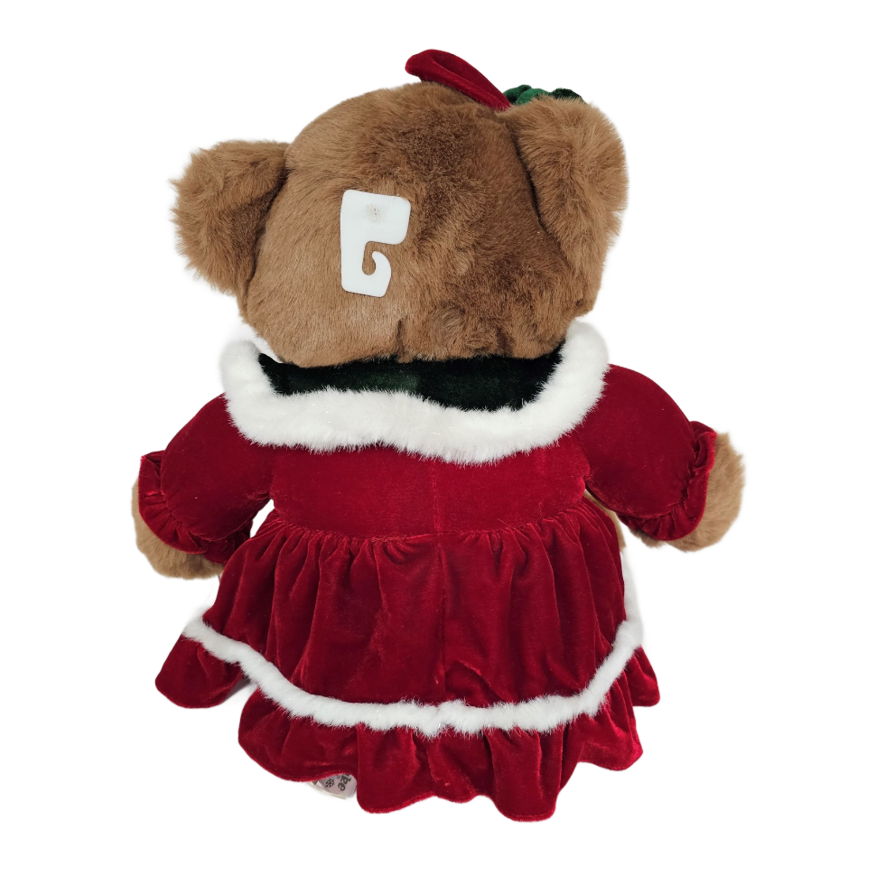 • Description: Black Eyes & Nose, Red Tongue, Smiling Mouth, Red Pants, Red Top & Green Vest with White Fur Trim, Red & Green Bow