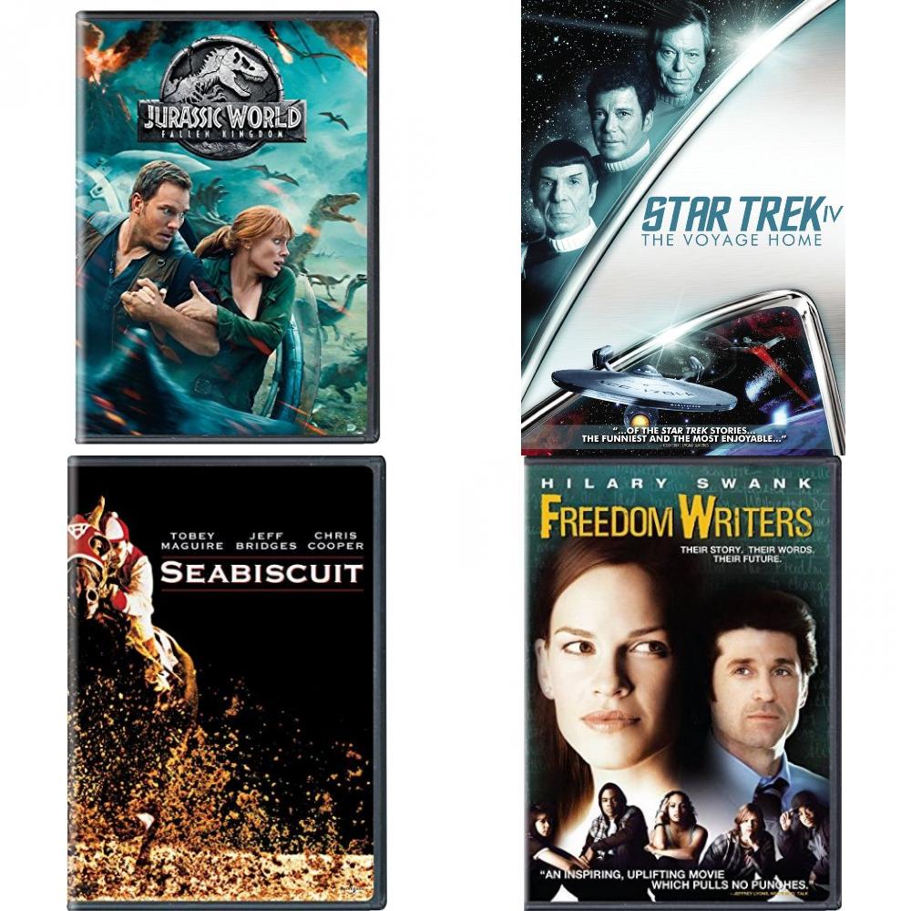 DVD Assorted Movies 4 Pack Fun Gift Bundle: Jurassic World: Fallen Kingdom, Star Trek IV: The Voyage Home, Seabiscuit, Freedom Writers