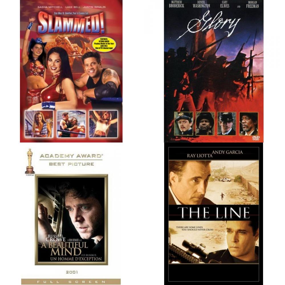 DVD Assorted Movies 4 Pack Fun Gift Bundle: Slammed!, Glory, A Beautiful Mind, The Line