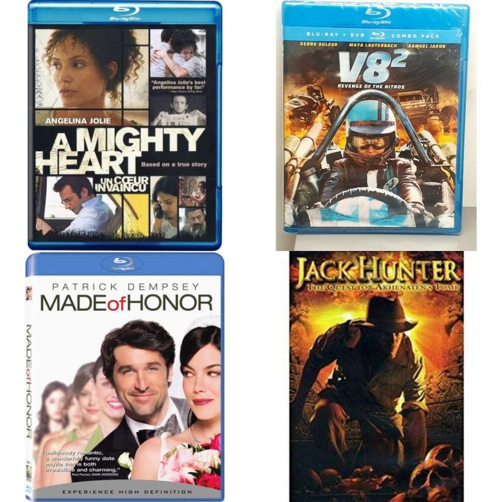DVD Assorted Movies Blu-ray 4 Pack Fun Gift Bundle: A mighty Heart Blu-ray, 2007, Bilingual Packaging V8 2 Revenge Of The Nitros Made of Honor + BD Live Jack Hunter And The Quest For Akhenaten’s Tomb
