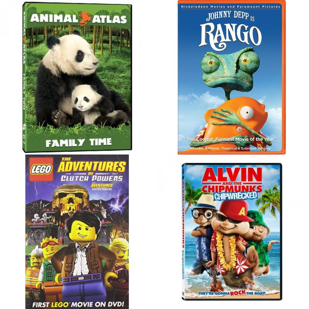 DVD Children’s Movies 4 Pack Fun Gift Bundle: Animal Atlas: Family Time, Rango, LEGO: The Adventures of Clutch Powers, Alvin and the Chipmunks: Chipwrecked