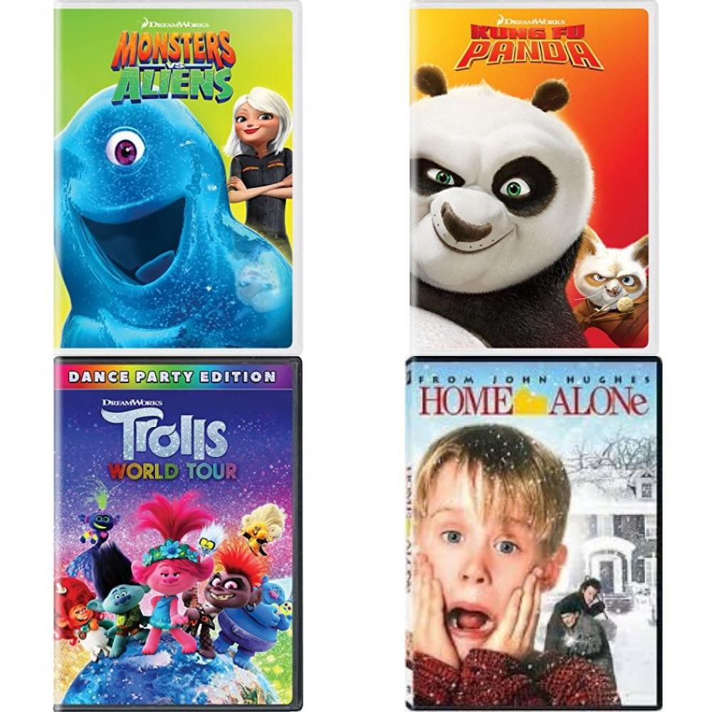 DVD Children’s Movies 4 Pack Fun Gift Bundle: Monsters vs. Aliens, Kung Fu Panda, Trolls World Tour, Home Alone 1