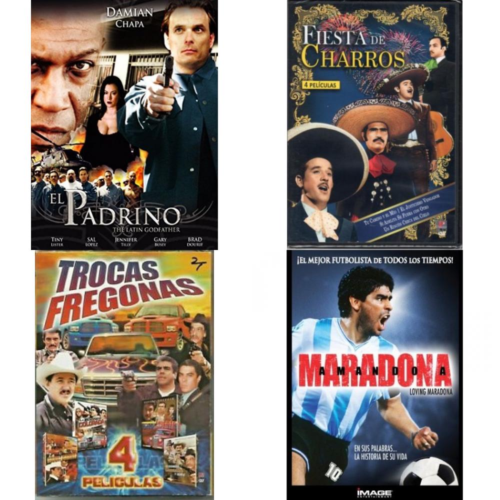 DVD Spanish Speaking Movies 4 Pack Fun Gift Bundle: El Padrino – The Latin Godfather Fiesta De Charros. 4 Peliculas Trocas Fregonas 4 Peliculas Amando A Maradona/Loving Maradona