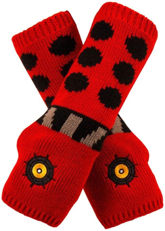 Stay comfortably warm throughout your time traveling experience when you wear the officially licensed Doctor Who Dalek Red Arm Warmers. Long red and black fingerless gloves feature Dalek print design.