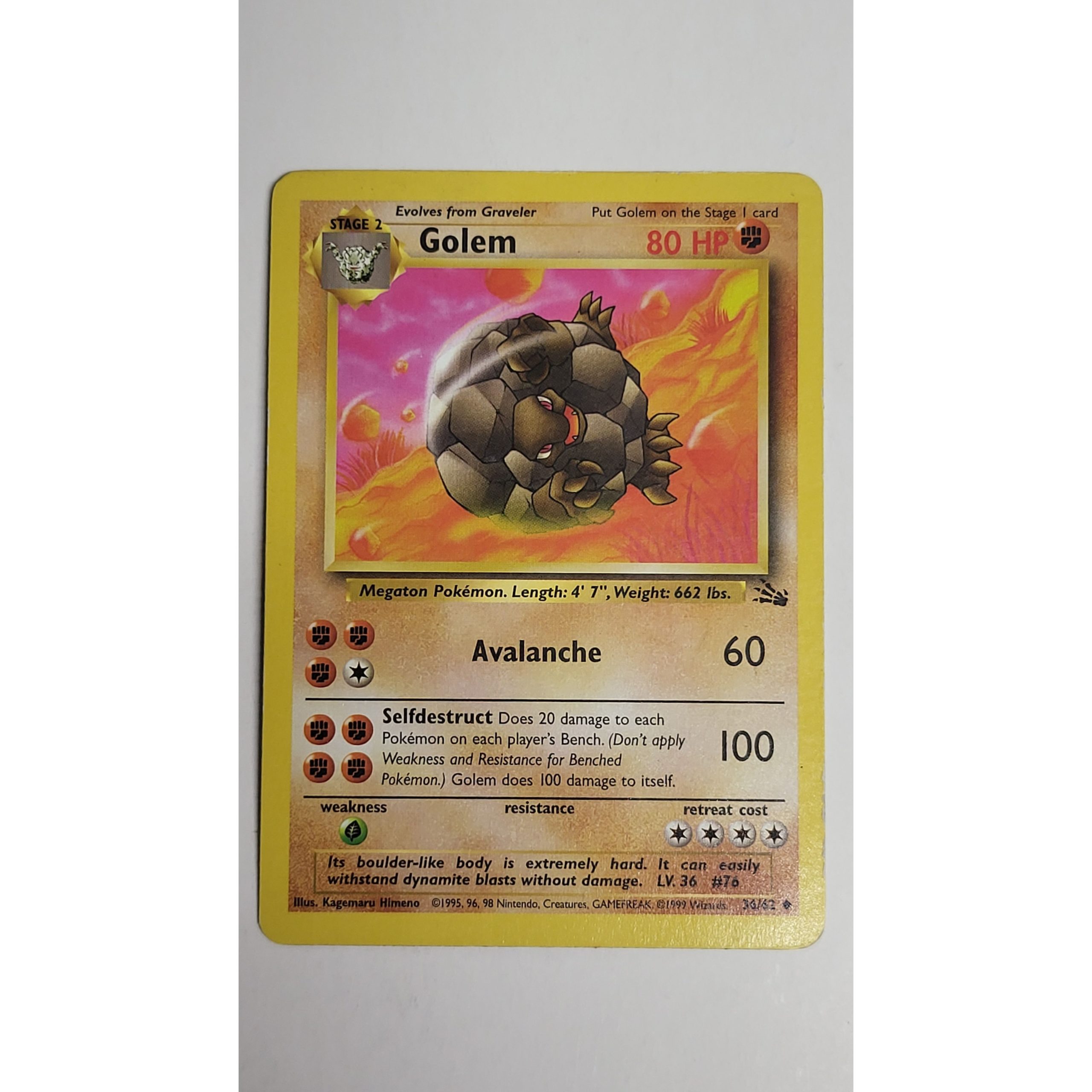 Excellent Golem 36/62 Fossil Set Pokemon Card
