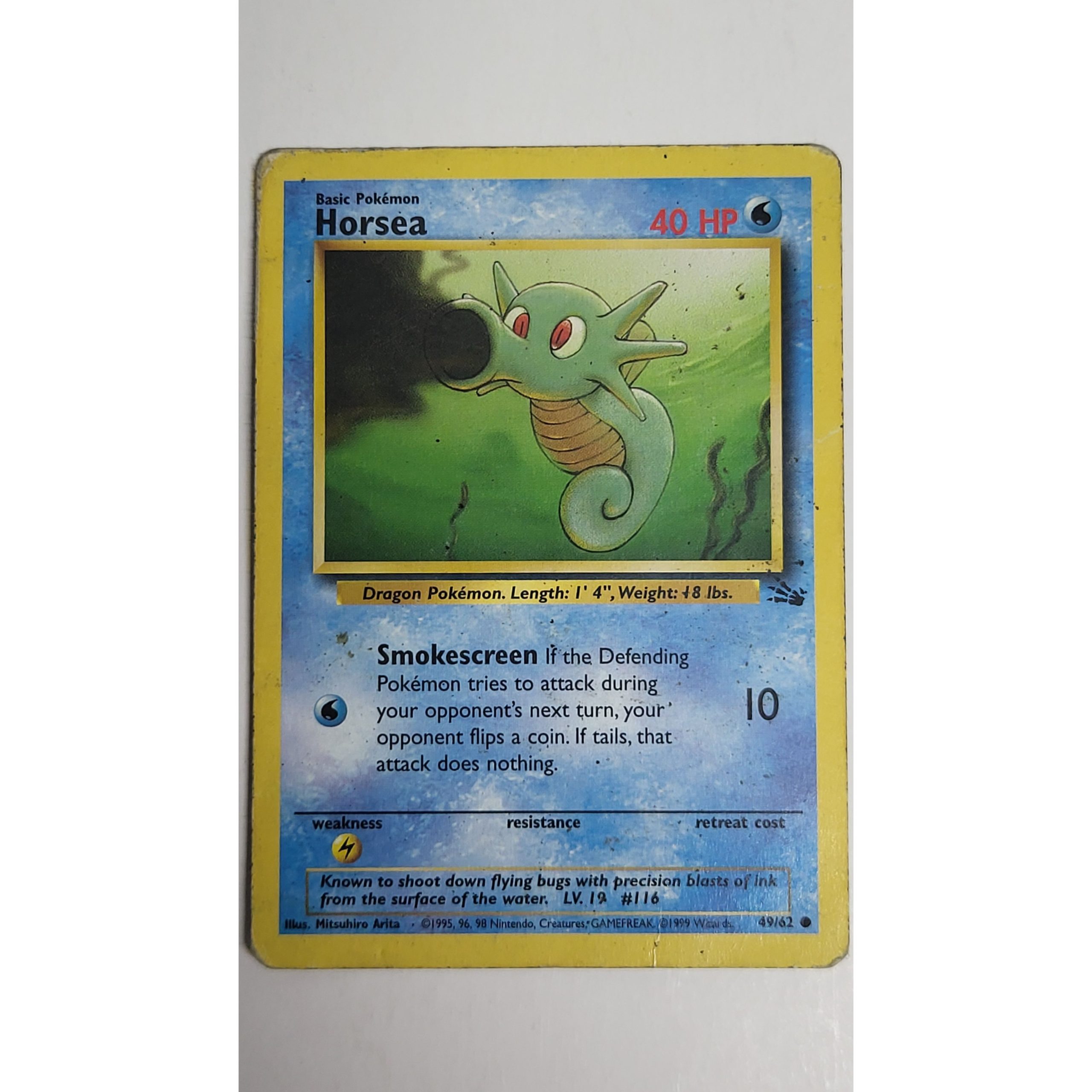 Excellent Horsea 49/62 Fossil Set Pokemon Card