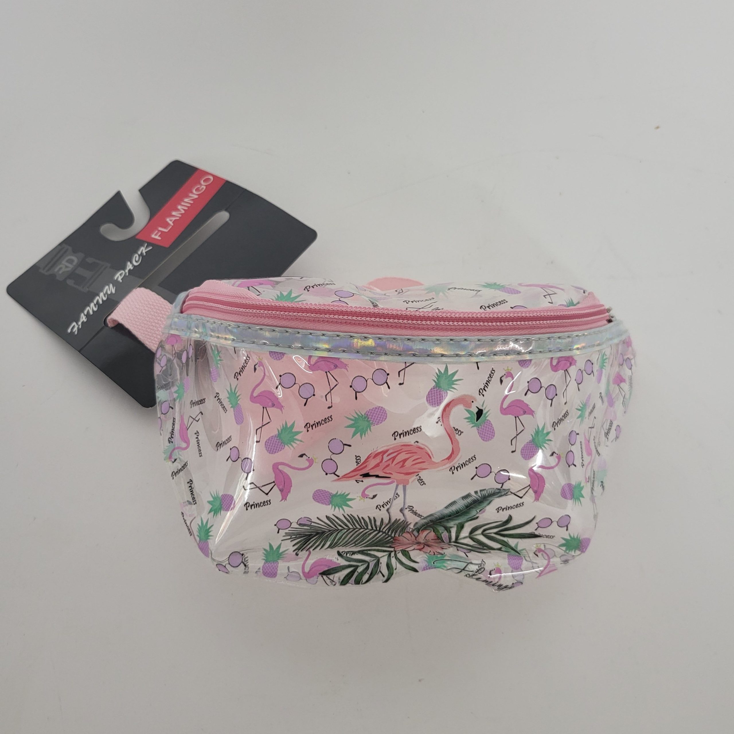 - Clear Pouch w/ Flamingo and Pineapple Theme.