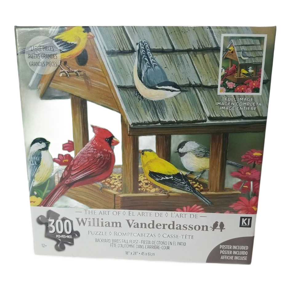 Flights of Fancy “Backyard Birds Fall Feast” 550 Piece Puzzle 24″x18″