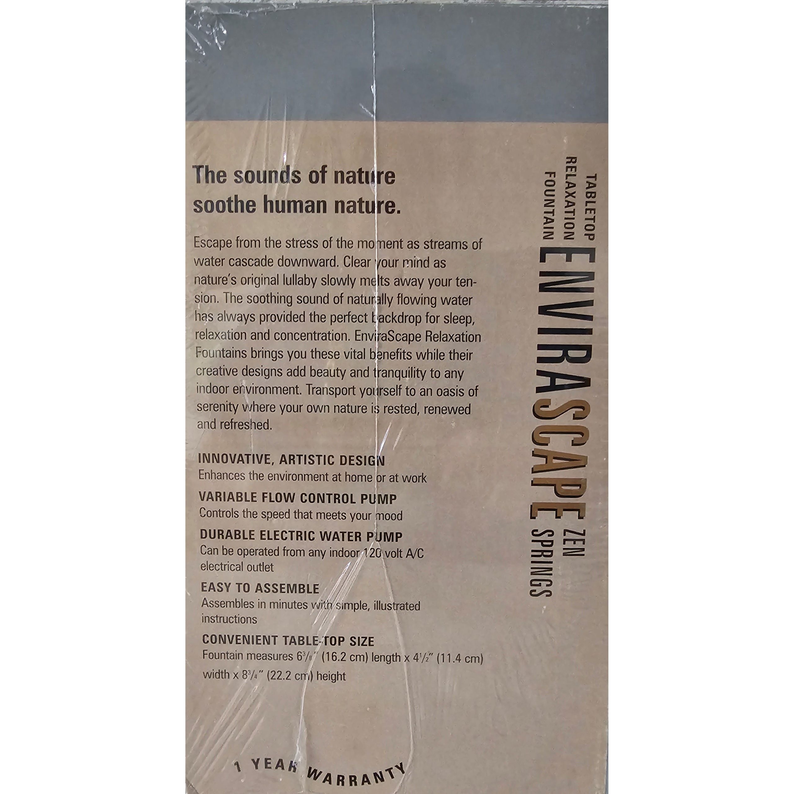 - CREATE AN OASIS OF TRANQUILITY – with the ENVIRASCAPE Zen Springs Water Fountain