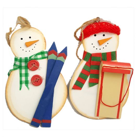 Maredy Gift Collection Skiing Sledding Snowman Wooden Ornament Set 5