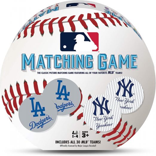 Show off your baseball knowledge in this awesome memory matching game! Includes all 30 MLB teams, so everyone’s favorite home team is included. Take turns flipping over the cards to make matching pairs. The player with the most pairs at the end wins! A great game and gift for baseball fans and board game fans. Officially licensed by Major League Baseball. Bring the MLB into your home! For For 1-4 players. Ags 3+.