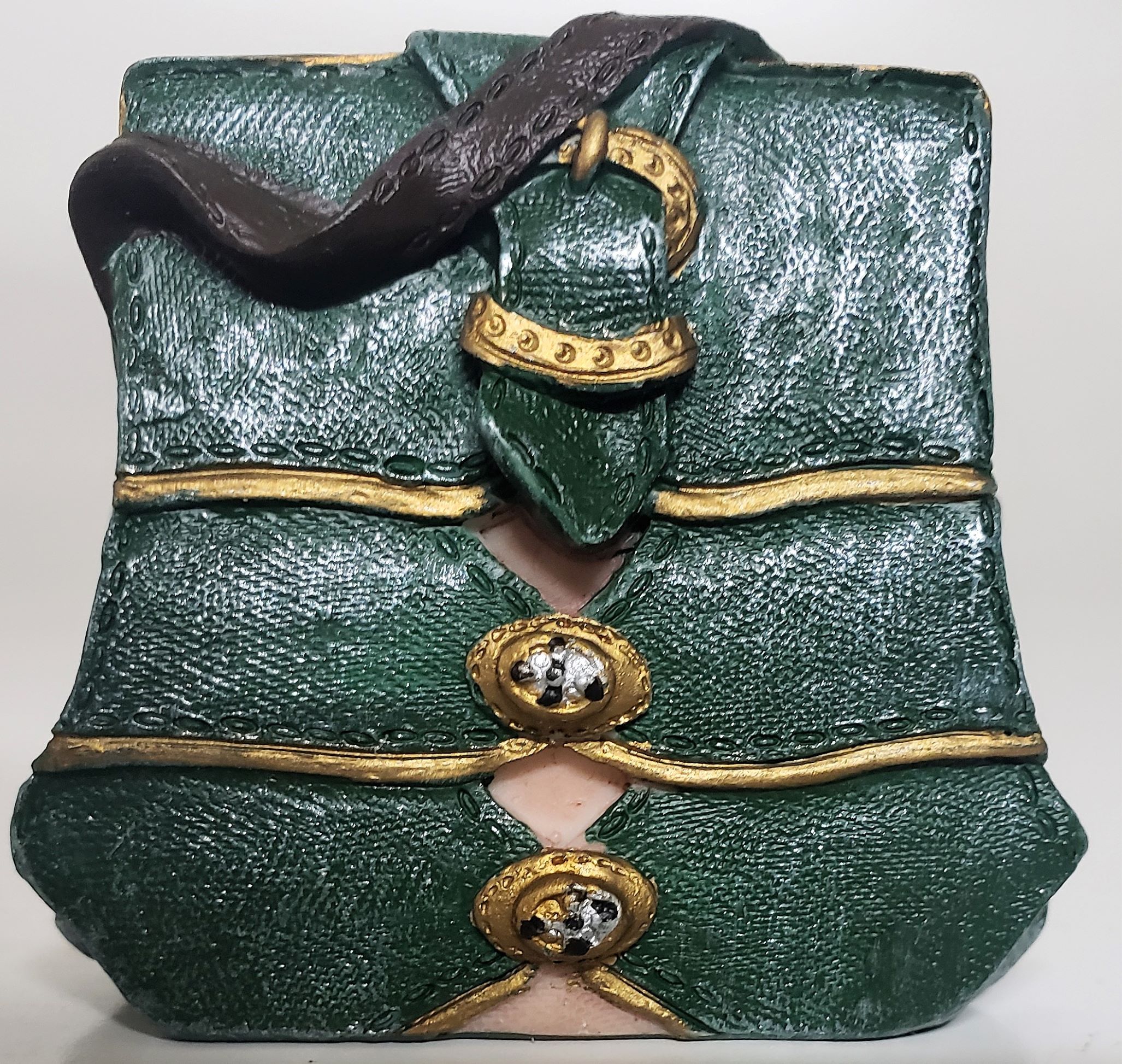 Miniature Purse Figurine – Green Handbag Goldtone Buttons