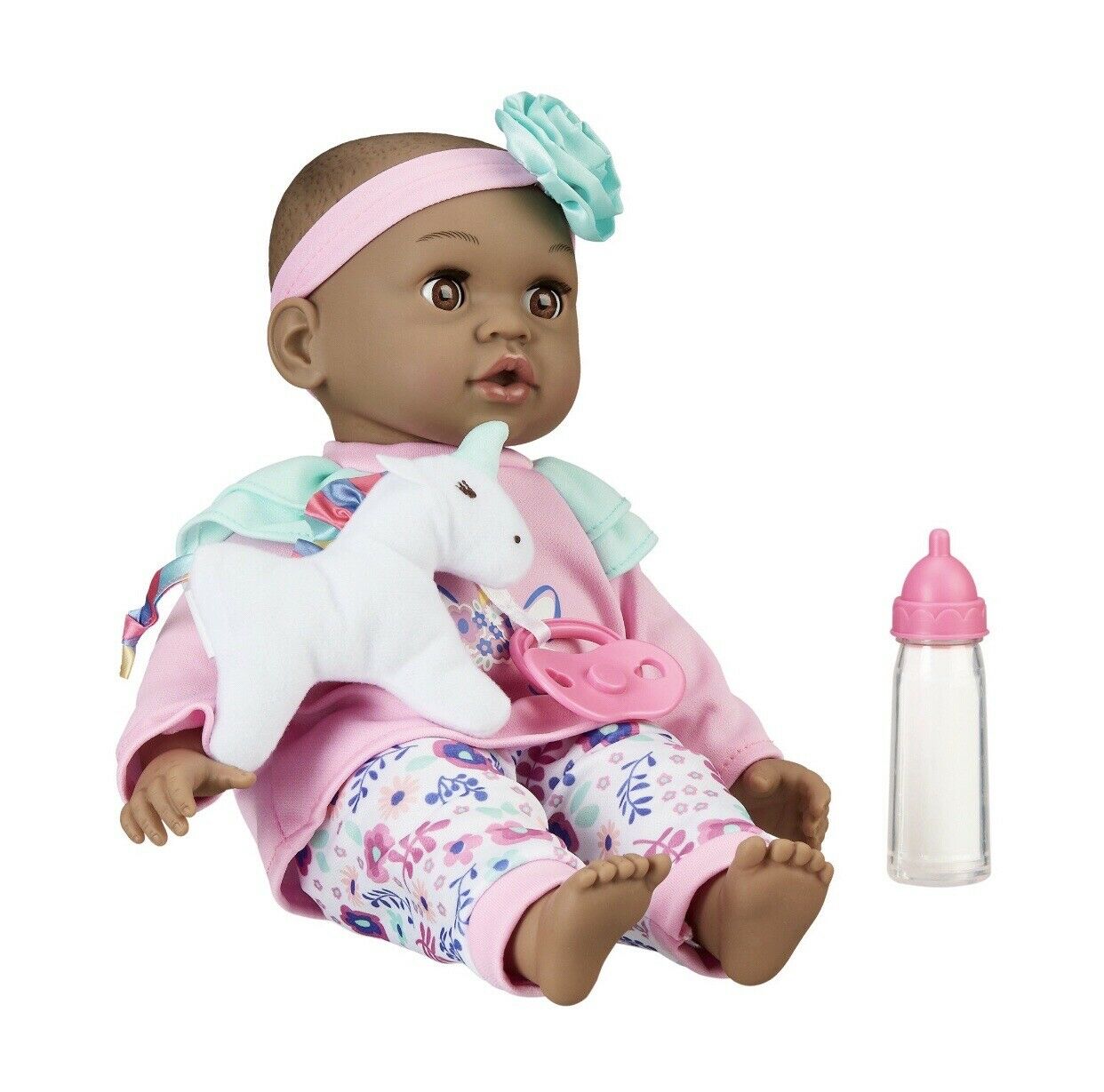 My Sweet Love 14″ African-American Baby Doll 4pc Toy Set With Unicorn & Bottle
