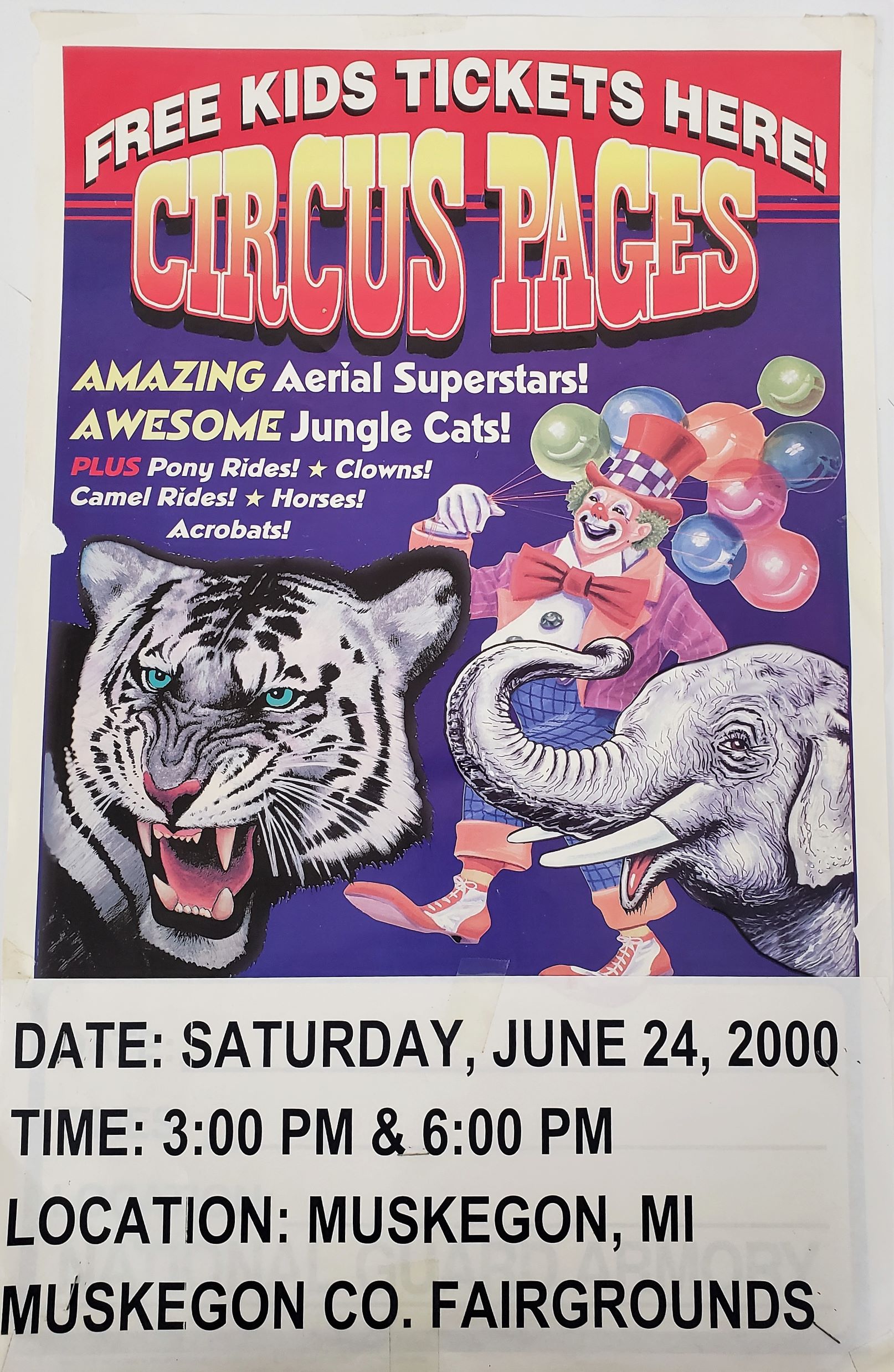 Original Retro Circus Poster – Circus Pages Feat. Aerial Superstars Muskegon County Fairgrounds