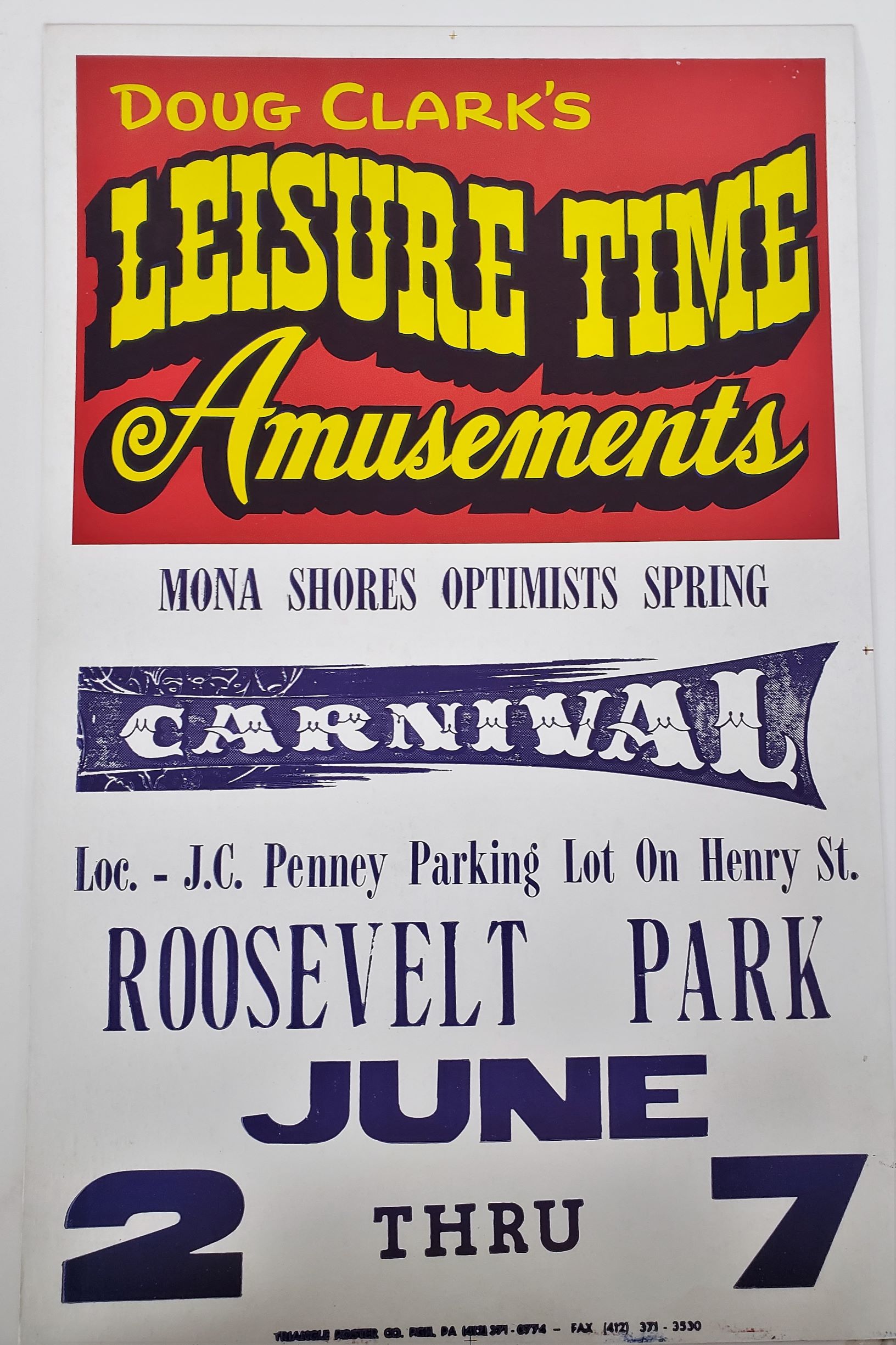 Original Vintage Retro Circus Poster – Doug Clarks Leisure Time Amusements Mona Shores Optimists Springs Carnival