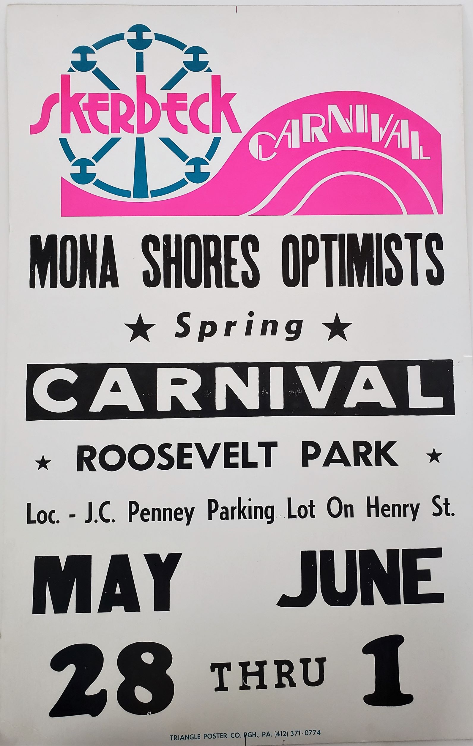 Original Vintage Retro Circus Poster – Skerbek Carnival Mona Shores Optimists Roosevelt Park