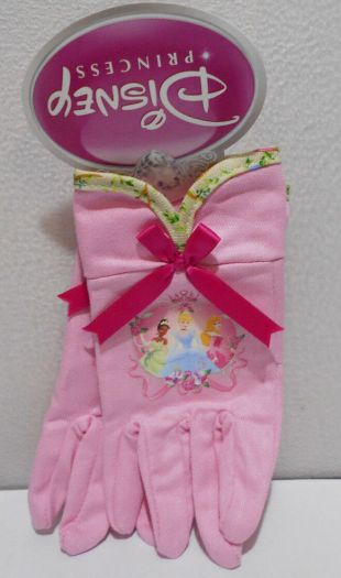 - Pink Gloves With Green Floral Trim at Cuff and Hot Pink Bow Detail
