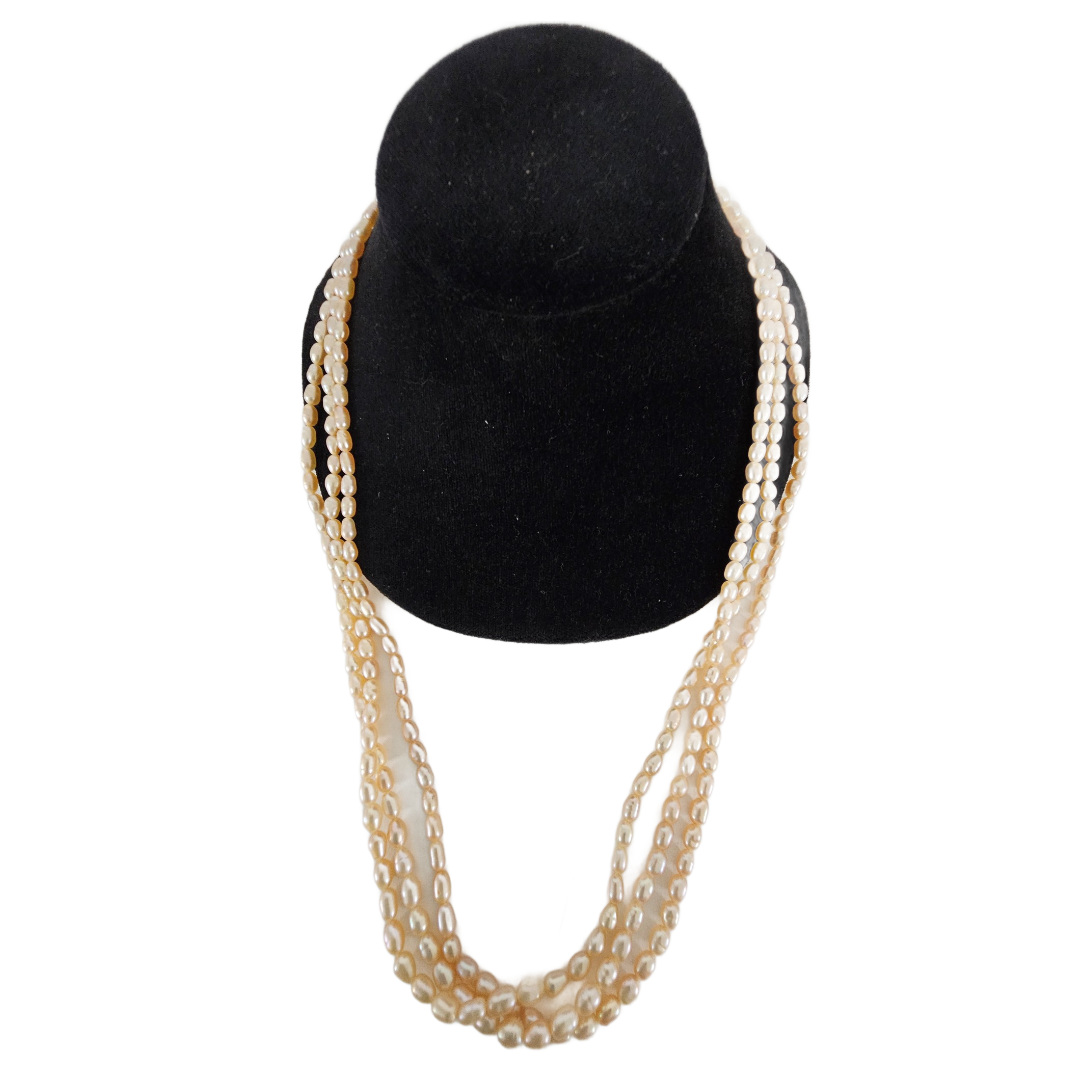 Pink Tiny Pearl Triple Strand Necklace Pearl Clasp 19 Inch