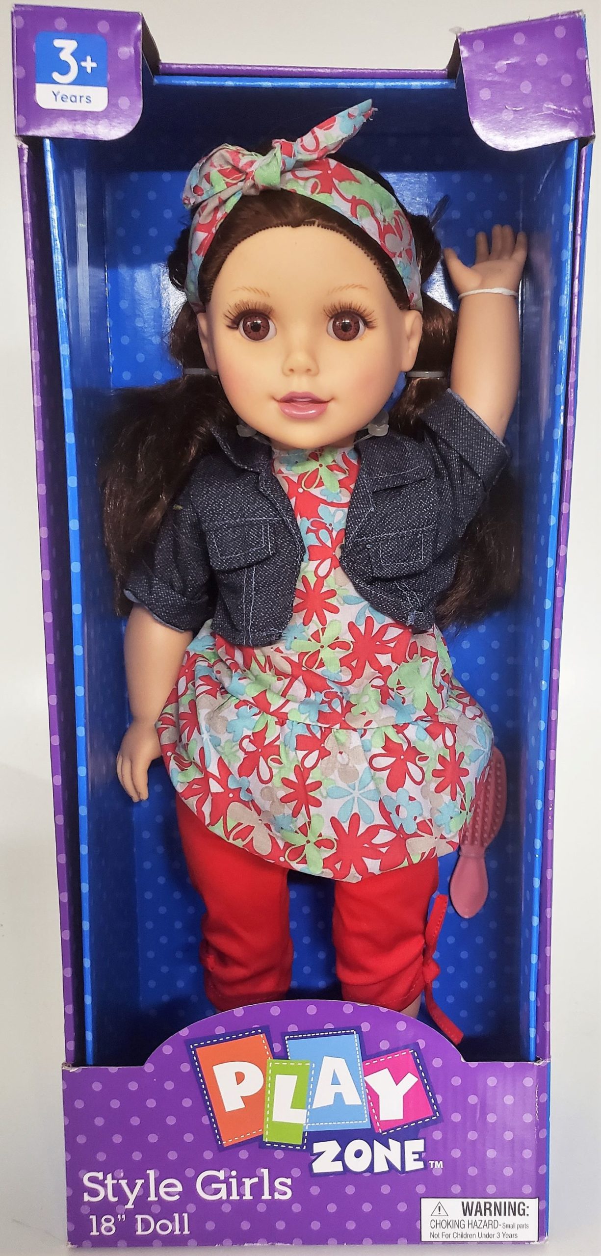 Play Zone Style Girls 18″ Doll “Aubree” Light Brown Hair Denim Top Plaid Skirt