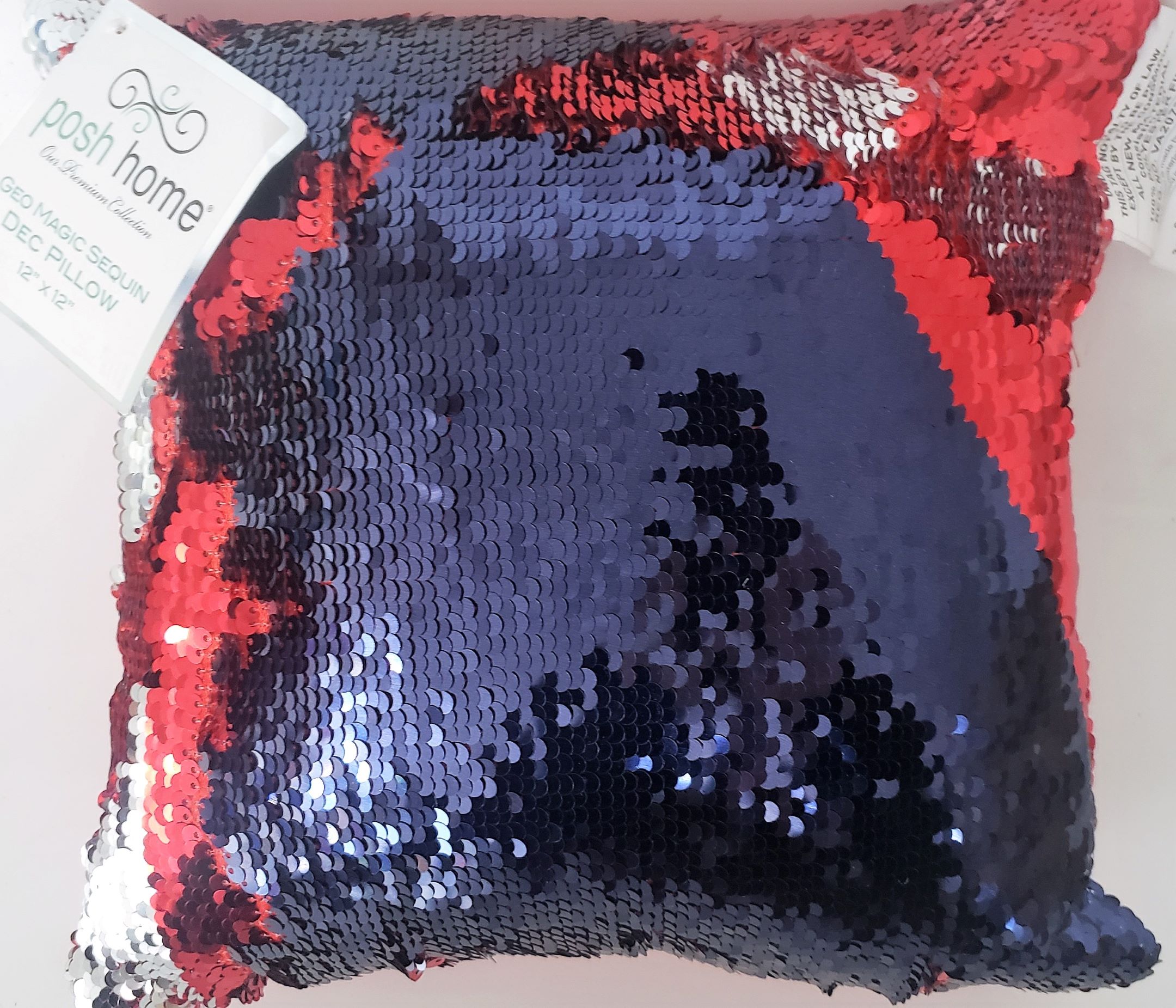 POSH HOME Magic Red/Blue/Silver Sequin Decorative Colorful Throw Pillow 12″ x 12″