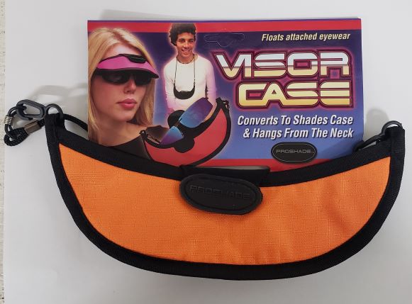 PROSHADE 3 in 1 – VISOR / CASE / LANYARD. Three products in one – stylish visor, protective case, adjustable lanyard. Converts from visor to case in a flash. Comfortable. Protects lenses in fleece lined case. Multi-function lanyard. FLOATS valuable eyewear. Connector clips attach to belt loop or bag strap for optional carry. May also carry cash, ID, or other light valuables. Half the cost of items purchased separately. PROSHADE does it all! 3 Visor Options for PROSHADE. 1. Wear visor attached to glasses. Freedom from the annoying elastic band of traditional visors. No “bad hair” and headaches. 2. Wear PROSHADE on its own (without glasses) using the comfortable lanyard and cord stop. 3. Attach it to glasses AND tighten the lanyard to secure for vigorous activities. Virtually wind-proof. Tested to 75 mph and did not blow off! Top of the Line. Quality made from durable fabrics. Stylish visor lends itself to all occasions. Shades from sun and minimizes glare. Black underside absorbs reflected light to get rid of squint for even more comfort! Runners, hikers, golfers, boaters love it. Works great when driving… Just wash with fresh water and let dry…