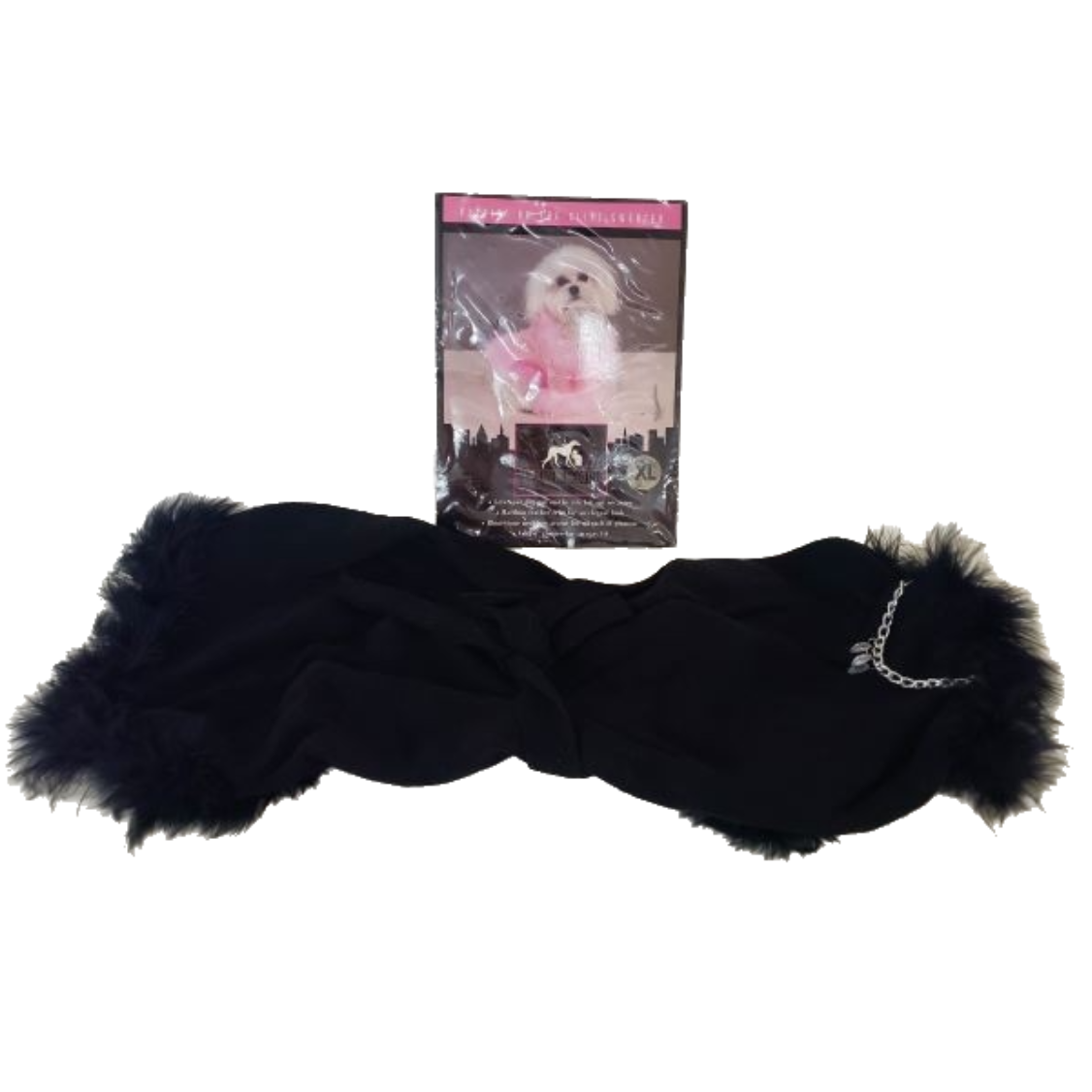 Puttin’ On the Glitz Dog Sweater With Feather Boa Trim and Bling-Bling Necklace Color: Black Size XL