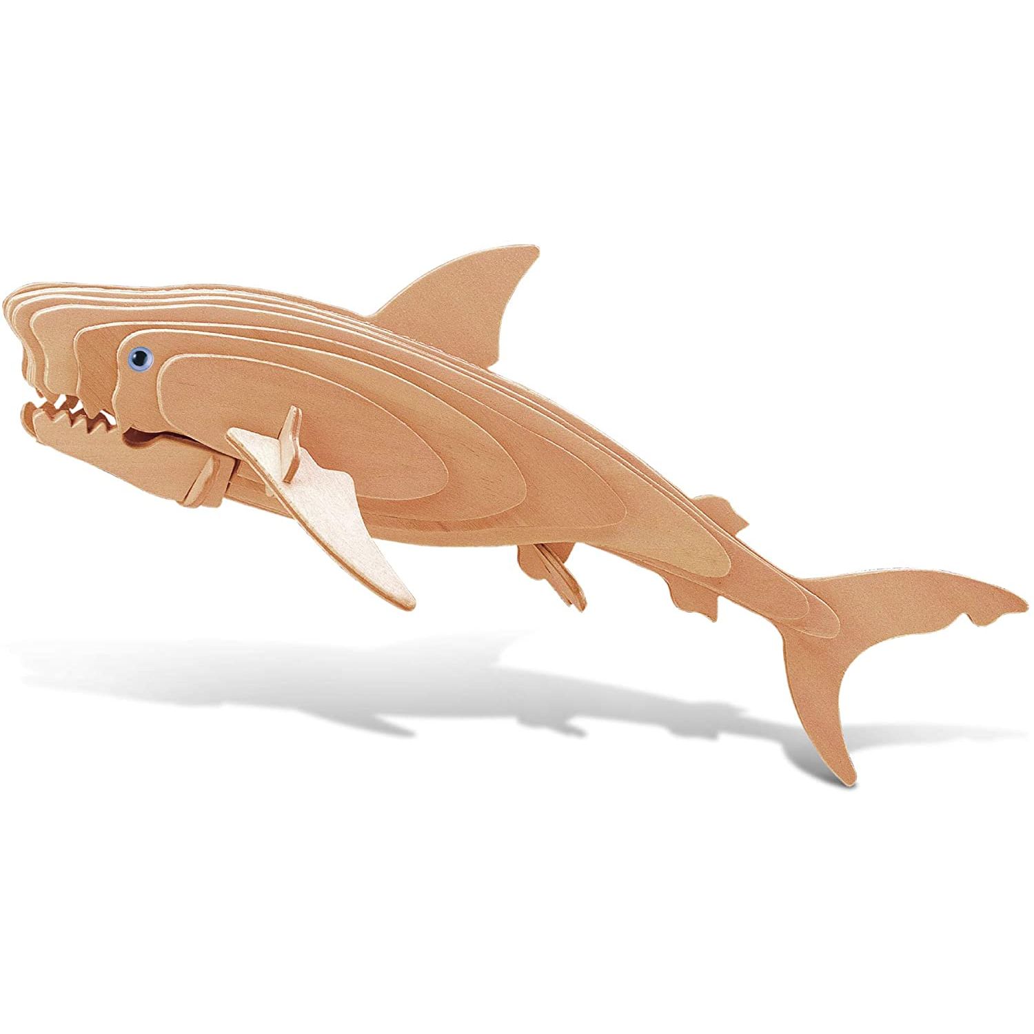 • HIGH-QUALITY GREAT WHITE SHARK WOODEN PUZZLE 3D KIT – This Great White Shark puzzle is made of high-grade 3mm natural wood. All puzzle pieces are laser cut & sanded thoroughly to ensure smoothness of edges. Adorned with realistic details like jaws, finds, & tail make this shark puzzle look and feel authentic. The unfinished natural color wood make it easy and fun to paint and personalize! Once assembled, the shark 3D puzzle will will hold a natural, exciting pose on its own, ready for display.