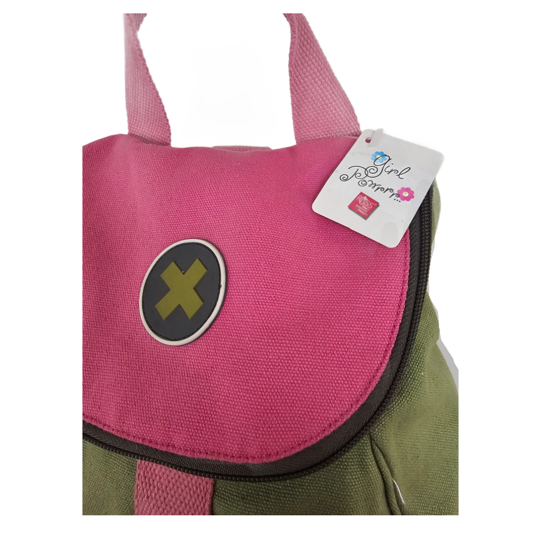RARE Vintage Russ Berrie Girl Power Cotton Backpack 13 x 8 x 5.5 Army Green/Pink/Gray