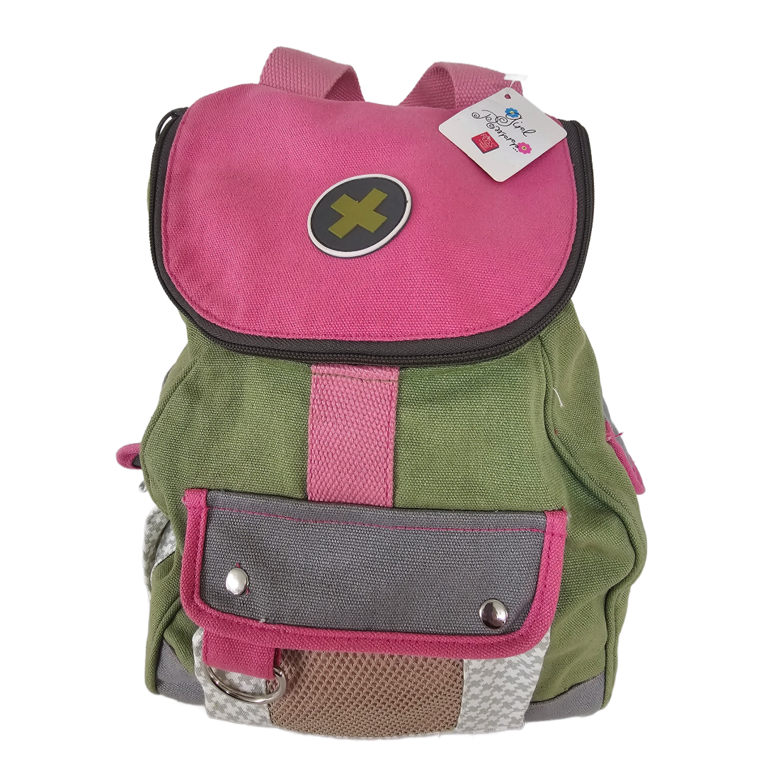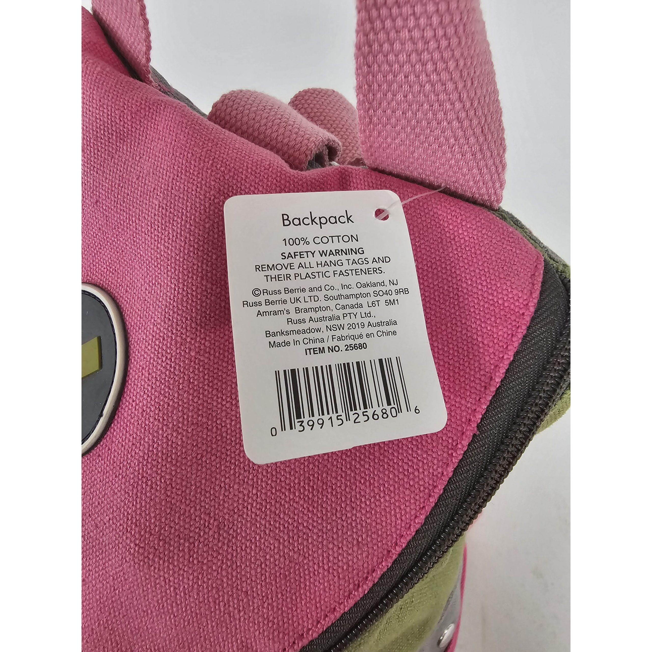 Russ Berrie & Co Power Girl Line Backpack Extremely Rare 100% Cotton. Main Zipper Enclosure, Snap Side Pockets, Front Snap Pocket With Keyring Holder. Item Dimensions:13″ H x 8″ L x 5.5″ W. Color: Color: Army Green. Dusty Pink, Gray. Brand New With Retail Tag.