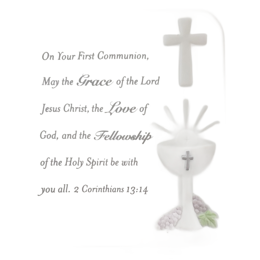 - Bible Verse Reads: “On Your First Communion, May The Grace of the Lord Jesus Christ, the Love of God, and the Fellowship of the Holy Spirit be with you all ~2 Corinthians 13:14.